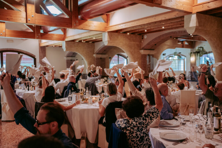 Elegante e raccolta, con tovagliati raffinati e di pregio, regala esperienze uniche anche per le cerimonie più ristrette. Ideali per eventi intimi, in cui poter godere dell’affetto dei vostri ospiti. Permette di accogliere 50 ospiti con tavoli rotondi.